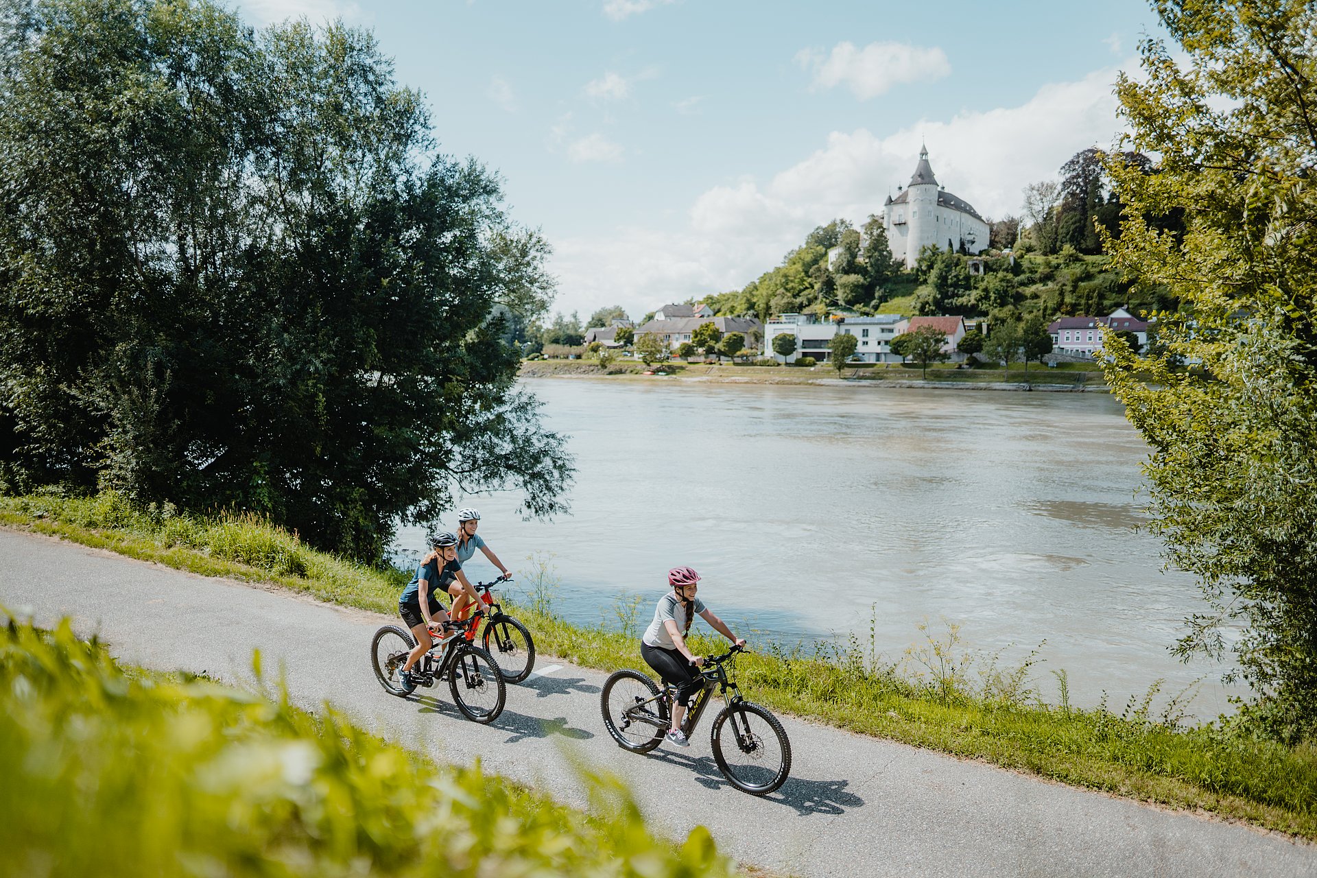 - WGDDonauOberoesterreichTourismusGmbHCMVisuals Donauradweg reloaded, Radfahrerinnen am Donauradweg mit Blick auf Ottensheim Wilhering (844 KB)